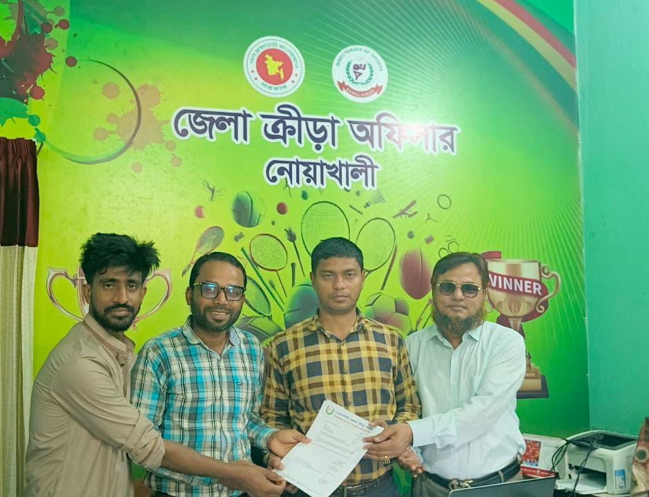 এ উপলক্ষে বুধবার (২৫ মার্চ ২০২৬) দুপুরে নোয়াখালী জেলা ক্রীড়া কর্মকর্তা ও ক্রীড়া সংস্থার সদস্য সচিব মাইন উদ্দিন মিলকি আনুষ্ঠানিকভাবে অংশগ্রহণ সংক্রান্ত লিখিত পত্র প্রদান করেন।