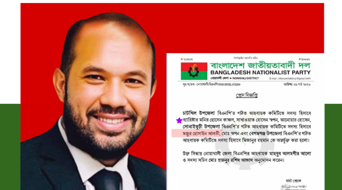 নোয়াখালী জেলা বিএনপির সাবেক আইন বিষয়ক সম্পাদক ব্যারিস্টার মনির হোসেন (কাজল) চাটখিল উপজেলা বিএনপির আহবায়ক কমিটির সন্মানিত সদস্য নির্বাচিত হয়েছেন